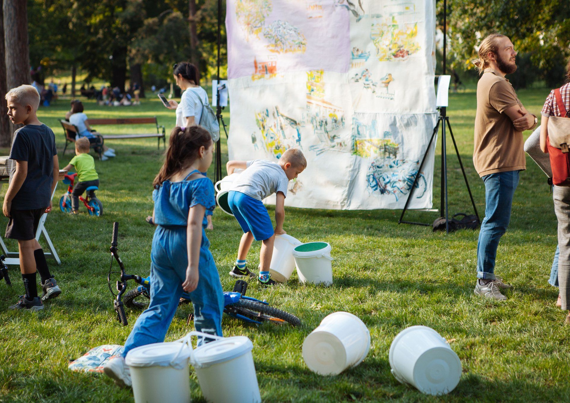 STOFF_WECHSEL is an interactive installation space that was created in early September 2021 in Auer-Welsbach-Park Vienna as part of an interdisciplinary collaboration between students from various Austrian art colleges within the framework of the Arts of Change project. STOFF_WECHSEL highlights and questions capitalist dynamics that are deeply rooted in our society and taken for granted. The focus is on two areas that are closely linked through their instrumentalisation for greater growth and efficiency: the inseparable pair of consumption and production (keywords: mass production, exploitation, waste, throwaway society) and the associated social values (keywords: self-optimisation, work-life balance, stress factors, burnout). In addition, an interactive utopian space opens up in the centre of the installation, where visitors can try out transformative approaches to their own lifestyles towards degrowth and post-growth through various playful media inputs.
